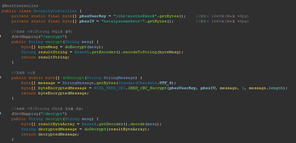 스프링 프로젝트에서 확인해보니 암호화/복호화 컨트롤러에 있었다.