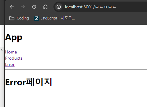 errorElement: <Error/>, //연결되지 않은 페이지일 경우, 이동