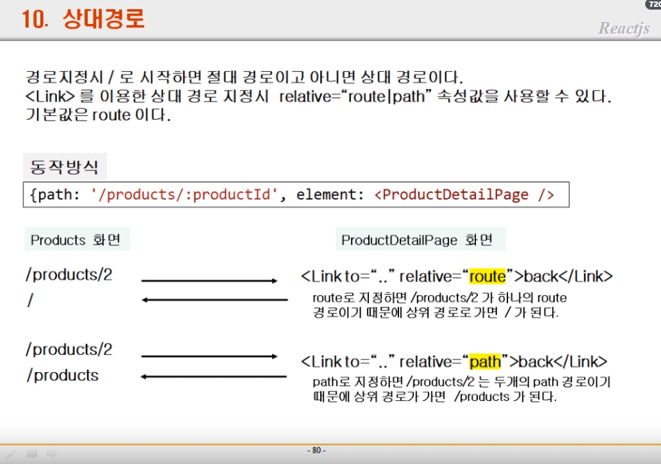 {/* relative = 'path' 두 개의 경로 (Products로 이동)*/}