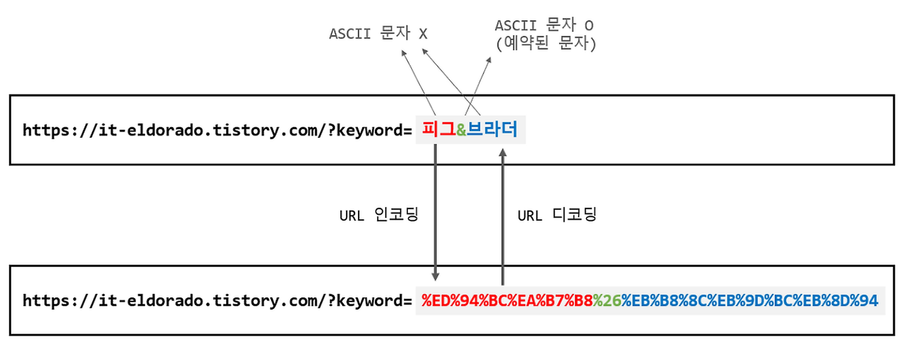 - 글자를 url에서 인식할 수 있는 아스키코드로 변환하는 것
