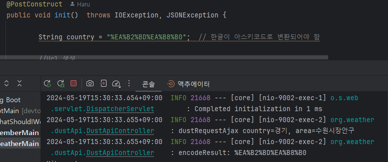 이전 미세먼지 API를 사용했을 때 URL을 생성하기 위해서는 지역 이름을 퍼센트 인코딩해야 하는 경우가 발생했다.