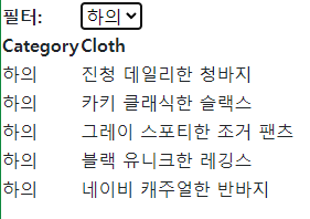 1. 카테고리가 기입된 필터를 변경하면 출력되는 옷은 해당 카테고리만 출력된다.